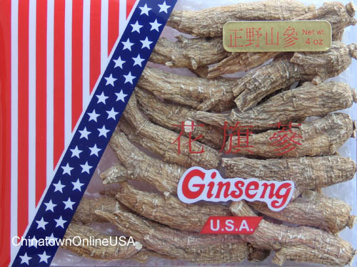 Wild American Ginseng Roots. Product of USA, Net weight: 4 oz. / box.